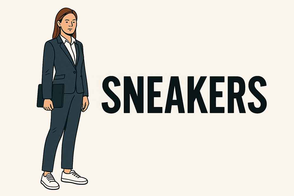 スーツに身を包みながらも、足元は白いスニーカー。郊外の悪路を歩く場所ならまだしも、ここは都心のど真ん中、地下鉄直結のオフィスビルだ。雨風にさらされることもなければ、未舗装の道を歩く必要もない。にもかかわらず、なぜ彼女はスニーカーで現れるのか。それはTPOの感覚が麻痺しているからだ。いや、もっと正確に言えば、「この場にふさわしい自分であろうとする意志」が欠落している。
